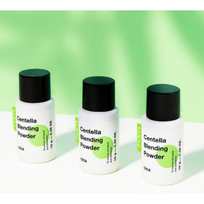 Пудра Centella Blending Powder - инновационное средство с высоким содержанием центеллы, которое быстро успокаивает раздражения, уменьшает покраснения и помогает бороться с воспалениями. Пудра уникальна тем, что ее можно добавлять в другие средства для усиления их действия. В составе есть 3-Cica комплекс, который ускоряет заживление и успокаивает кожу. Средство эффективно контролирует выработку себума и уменьшает жирный блеск. Алантоин - снимает раздражение, устраняет зуд. Средство укрепляет защитный барьер кожи и защищает от агрессивного воздействия внешних факторов. Пудра от Tiam помогает избавиться от темных пятен после акне и добавляется к уходовым средствам.