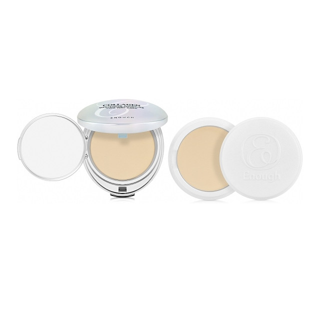 Пудра со сменным блоком Enough Collagen 3X Moisture Two-way Cake SPF28 PA++ #21N сочетает декоративный эффект и богатый уходный комплекс, создавая идеальный баланс между красотой и заботой о коже. Основание из талька, мики и Nylon-12 обеспечивает легкое, невесомое покрытие, которое выравнивает тон и дарит коже естественный матовый финиш без ощущения маски. Мелкодисперсные минеральные пигменты (диоксид титана и оксиды железа) деликатно скрывают несовершенства, придавая сияние и свежесть лицу.