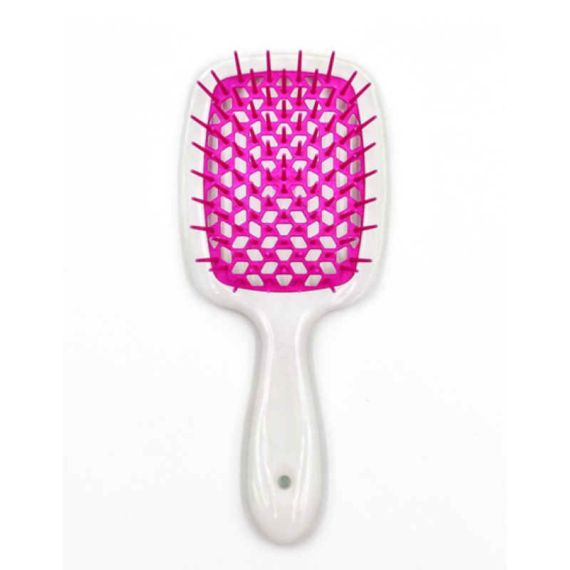 Белая пластиковая расческа Superbrush разработана для качественного и бережного расчесывания волос любого типа и длины, сушки и укладки, создания различных причесок.