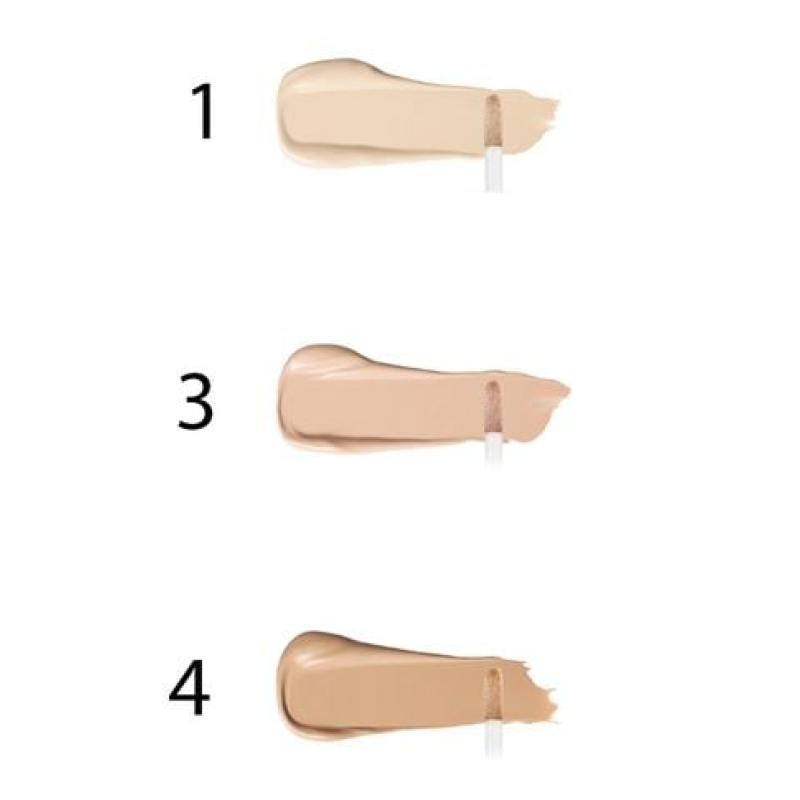 Нанесение: Наносите консилер с помощью каплевидного спонжа или аппликатора на проблемные участки кожи (темные круги вокруг глаз, уголки глаз, носогубные складки), растушевывая его подушечками пальцев или плоской кистью. Для визуального осветления лица распределите консилер на выпуклые части лица и по контуру губ.