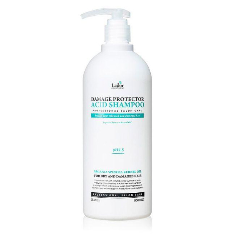 Шампунь Damaged Protector Acid Shampoo - прекрасное средство для деликатного и тщательного очищения окрашенных волос. Бесщелочная основа средства нормализует рН баланс кожи головы и препятствует вымыванию пигментов.