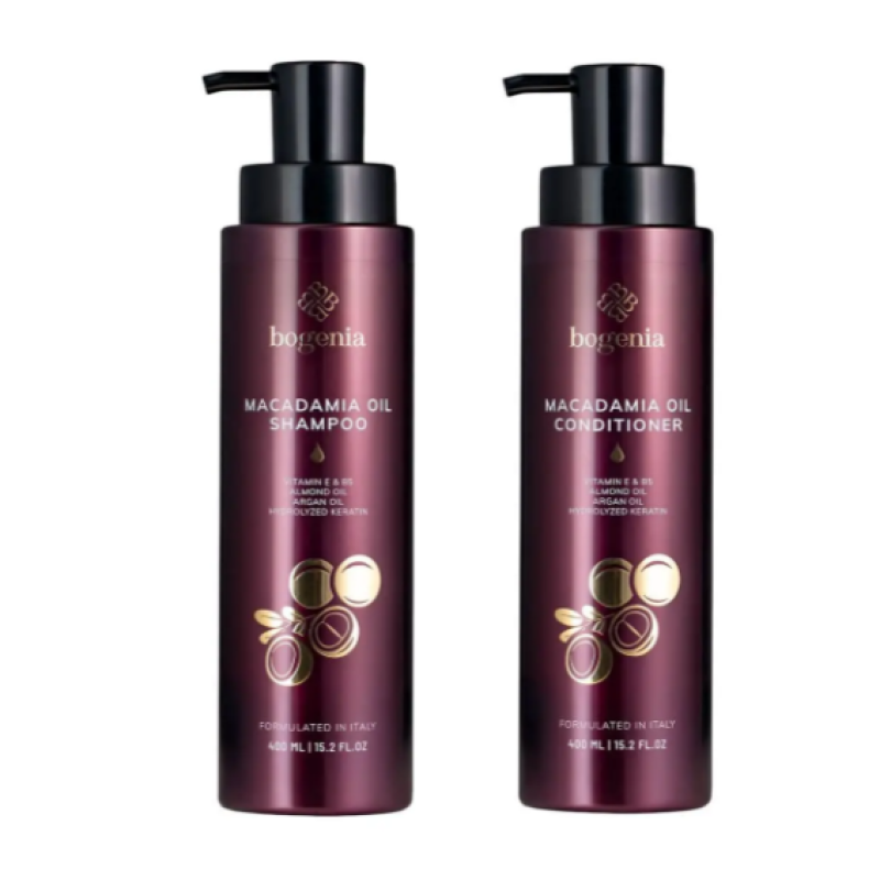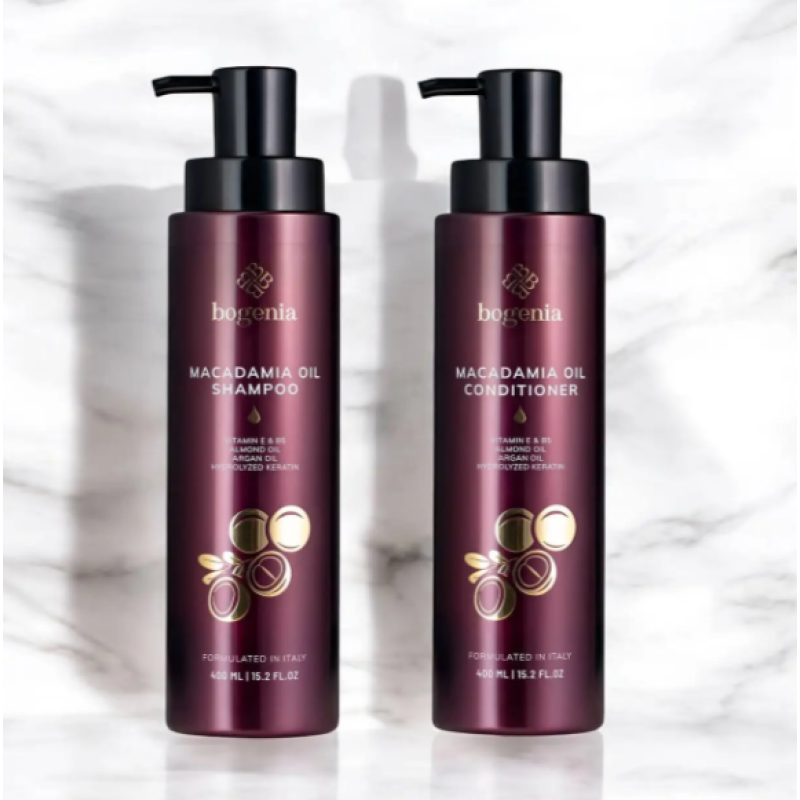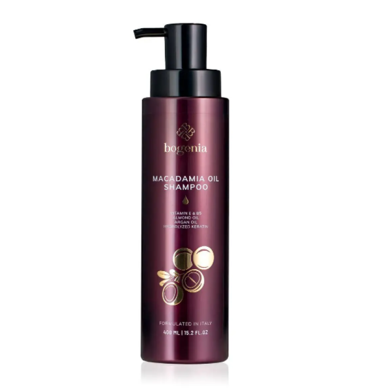 Шампунь Macadamia Oil Shampoo - это хорошее средство для бережного ухода за волосами, которое придает гладкость блеск, а не просто очищение волос. В формуле есть масло макадамии, которое глубоко питает и делает мягким каждую прядь волос, максимально шелковистыми и блестящими. Компонент славится своими восстанавливающими свойствами, а именно защита от негативного воздействия, таких как термическая укладка, ультрафиолетовое излучение. Гидролизованный кератин - укрепляет волосы, делает их более плотными и защищает от ломкости. В составе шампуня есть витамины Е и B5, которые способствуют укреплению волосяных фолликулов, предотвращают ломкость, сухость волос. Шампунь поддерживает оптимальный уровень увлажнения и придает естественный блеск. Средство от Bogenia имеет мягкую формулу, которая бережно очищает кожу головы. не нарушая естественный баланс.