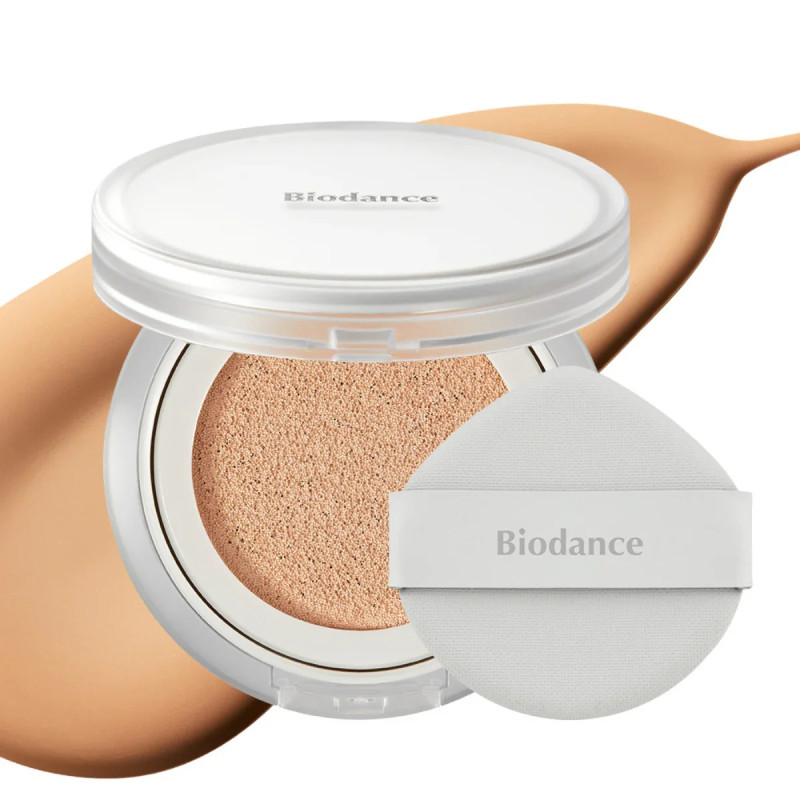 Сияющий тональный кушон для лица Biodance Radiant Pure Essence Cushion 23N с уходящей формулой и натуральным финишем.