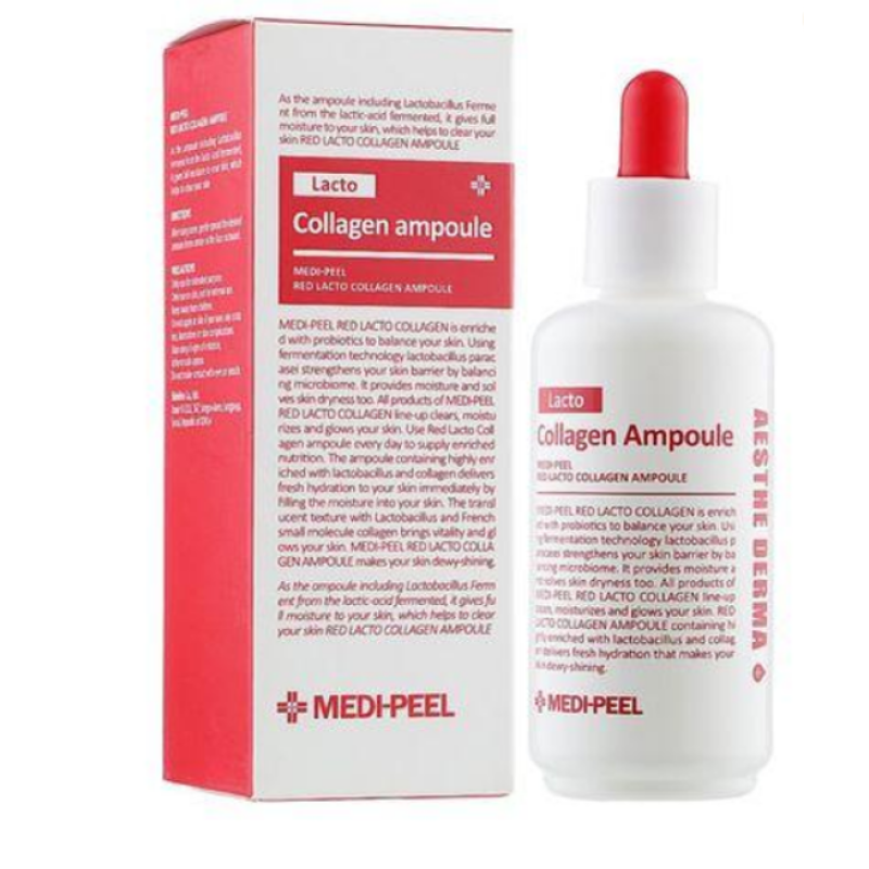 Сыворотка MEDI-PEEL RED LACTO COLLAGEN TIGHTENING AMPOULE - эффективное средство для восстановления упругости кожи, выравнивания гладкости и улучшения общего состояния лица. Средство работает над выравниванием текстуры, тона, уменьшением проявлений морщин и заломов. Сыворотка действует, как и тоник очищает поры, уменьшает отеки и устраняет следы усталости. В составе есть ферментированные лактобактерии - укрепляют микробиом кожи, повышают ее защитные функции. Гидролизованный коллаген - обеспечивает упругость и гладкость кожи. Экстракт сосны и зеленого чая - мощные антиоксиданты, которые защищают от старения, уменьшают отеки через несколько минут. Экстракт кофейных зерен, винограда и хурмы - тонизируют, увлажняют клетки эпидермиса и осветляют пигментные пятна. Благодаря своему составу сыворотка от MEDI-PEEL быстро впитывается, при этом делая кожу максимально быстро эластичной. До 200 часов увлажнения может создать сыворотка, так как она разработана для бережного воздействия и подходит для всех типов кожи.