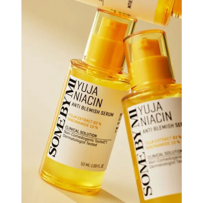 Сыворотка Yuja Niacin Blemish Serum - борется с тусклостью, пигментными пятнами и покраснениями. Средство обладает мощными осветляющими и восстанавливающими функциями, которые улучшают текстуру эпидермиса, борются с антивозрастными изменениями. В составе есть 10% ниацинамида, который эффективно осветляет пигментацию и выравнивает тон. Экстракт плодов юзу - насыщает кожу антиоксидантами и возвращает естественное сияние. Аденозин - уменьшает заметность морщин и мелких линий, стимулирует клеточное обновление. Вытяжка корня солодки - успокаивает раздражения и покраснения. Комплекс витаминов питает и укрепляет эпидермис. Сыворотка осветляет кожу и помогает появлению новых пятен на коже, делает кожу гладкой, упругой и эластичной. Средство от Some By Mi имеет освежающий аромат цитрусовых и после использования создает приятное ощущение прохлады.