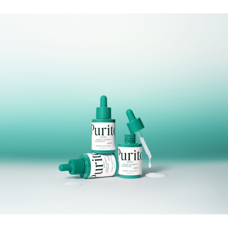 Сыворотка Mighty Bamboo Panthenol Serum - средство, которое мгновенно дарит комфорт коже, сияние и глубокое очищение. В составе есть 13% пантенола, который превращается в витамин В5, эффективно увлажняет, уменьшает покраснения, заживляет микроповреждения и снижает воспаление. Экстракт бамбука - богат антиоксидантами, минералами и аминокислотами, подтягивает кожу, уменьшает морщины, выравнивает тон и укрепляет кожный барьер. Эктоин - природный компонент с выраженным успокаивающим, регенерирующим и защитным действием. Ниацинамид - осветляет, выравнивает текстуру, укрепляет кожный барьер и повышает эластичность. Сыворотка делает кожу гладкой, увлажненной и сияющей, восстанавливает гидролипидный баланс и заметно улучшает текстуру кожи. Средство от PURITO гипоаллергенное без отдушек для чувствительной кожи, которое быстро снимает воспаление.