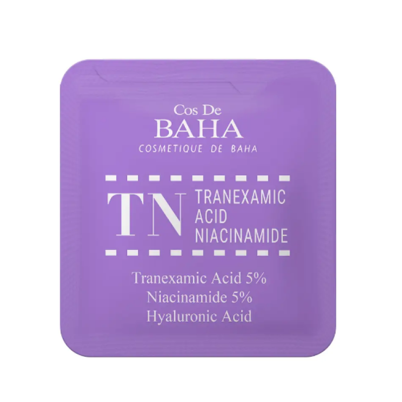 Сыворотка TN Serum Sample - инновационное средство на основе сока алоэ, которое эффективно борется с нежелательной пигментацией, покраснениями и тусклостью кожи. Она мягко выравнивает тон кожи, уменьшает видимость купероза, устраняет стянутость и обезвоженность. В составе есть транексамитовая кислота, которая осветляет пигментные пятна, выравнивает общий тон, заметно уменьшает тусклость и способствует заживлению микротрещин. Ниацинамид - восстанавливает защитный барьер, устраняет шелушение, сужает поры и улучшает эластичность. Аллантоин - стимулирует обновление эпидермиса, успокаивает, обладает противовоспалительными свойствами и помогает в заживлении кожи. Экстракт зеленого чая - антиоксидант, снимает воспаление и раздражение, освежает кожу. Сыворотка обладает антибактериальным действием, выравнивает тон и смягчает кожу. Средство от COSDEBAHA защищает кожу от старения и вредного воздействия окружающей среды.