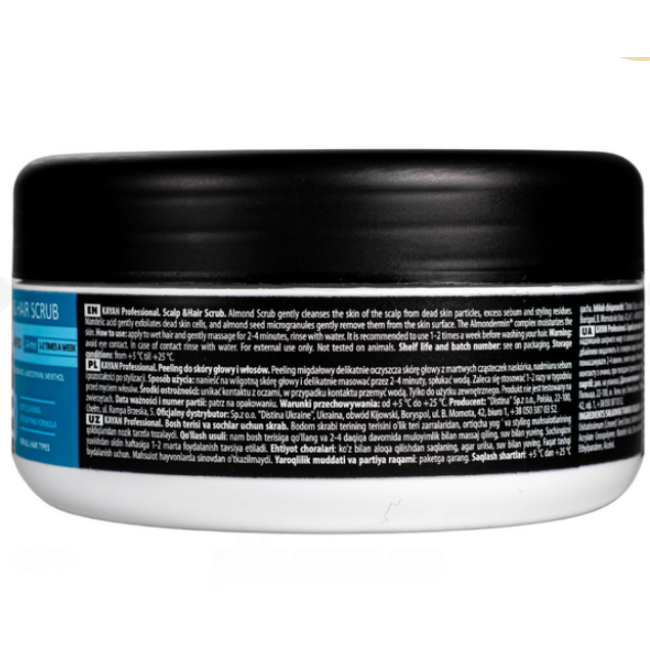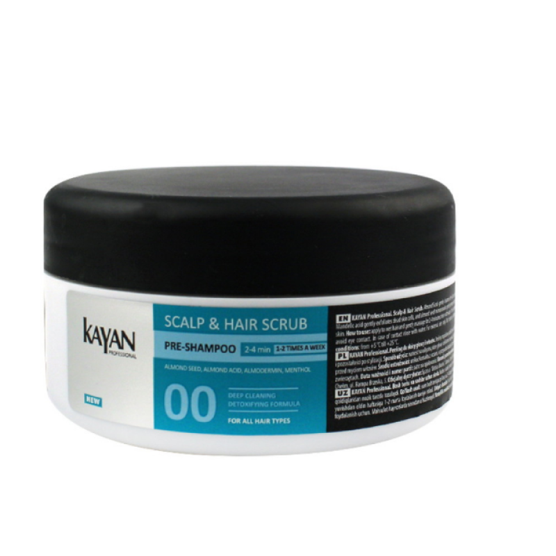 Скраб для головы - создан для глубокого очищения, питания и восстановления баланса кожи головы. Средство деликатно устраняет избыток себума, очищает поры и питает волосяные фолликулы необходимыми микроэлементами. Скраб обеспечивает длительное ощущение свежести и чистоты. Придает волосам легкость, объем и естественное сияние. В составе есть миндальная кислота - регулирует выработку себума, растворяет камедоны и обладает антисептическим действием. Масло ментола - приятно охлаждает, освежает кожу, дарит волосам гладкость и блеск. Масло лайма - стимулирует фолликулы, восстанавливает гидролипидный баланс. Скраб от Kayan Professional стимулирует кровообращение, способствует активному росту здоровых волос.