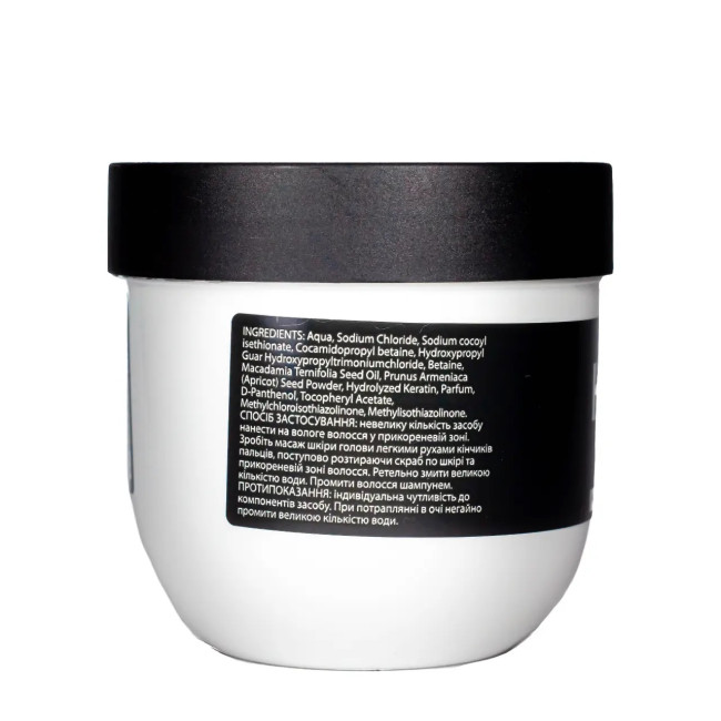 Масло макадамии — ценный источник жирных кислот, питающий, увлажняющий и восстанавливающий природный гидролипидный барьер. Она дарит волосам мягкость, эластичность и здоровый блеск. Порошок косточек абрикоса работает как натуральный микроскраб, нежно полируя кожу головы и стимулируя кровообращение. Гидролизованный кератин, витамин Е и провитамин В5 (пантенол) проникают в структуру волос, укрепляя их изнутри, уменьшая ломкость и придавая объем.