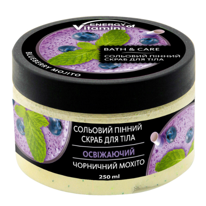 Ароматный пенный скраб Черничный мохито разработан ведущими специалистами украинской бьюти-индустрии для тщательного домашнего ухода за телом. Средство обладает уникальными эксфолиирующими, тонизирующими, восстанавливающими свойствами. Оно имеет чудный, бодрящий аромат сладкой черники.
