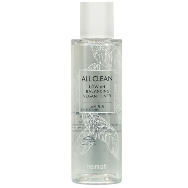 Балансирующий тонер All Clean Low pH Balancing Vegan Toner разработан для ежедневного ухода за кожными покровами всех типов. Он обладает пилинговыми, очищающими, иммуномоделирующими свойствами, поддерживает природный кислотно-щелочной уровень, устраняет загрязнения, излишки себума, остатки декоративной косметики. Препарат оказывает защитное и осветляющее действие.