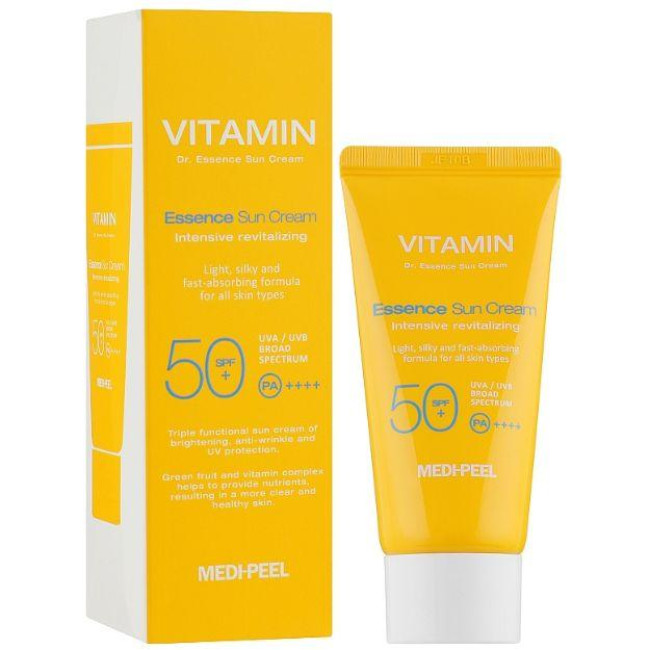 Витаминизирующий фотопротекторный крем с витаминами Vitamin Dr. Essence Sun Cream SPF50+/PA+++ насыщает эпителиальные ткани полезными веществами, защищает их от пагубного влияния солнечного излучения. Активные компоненты витализируют и витаминизируют дерму.