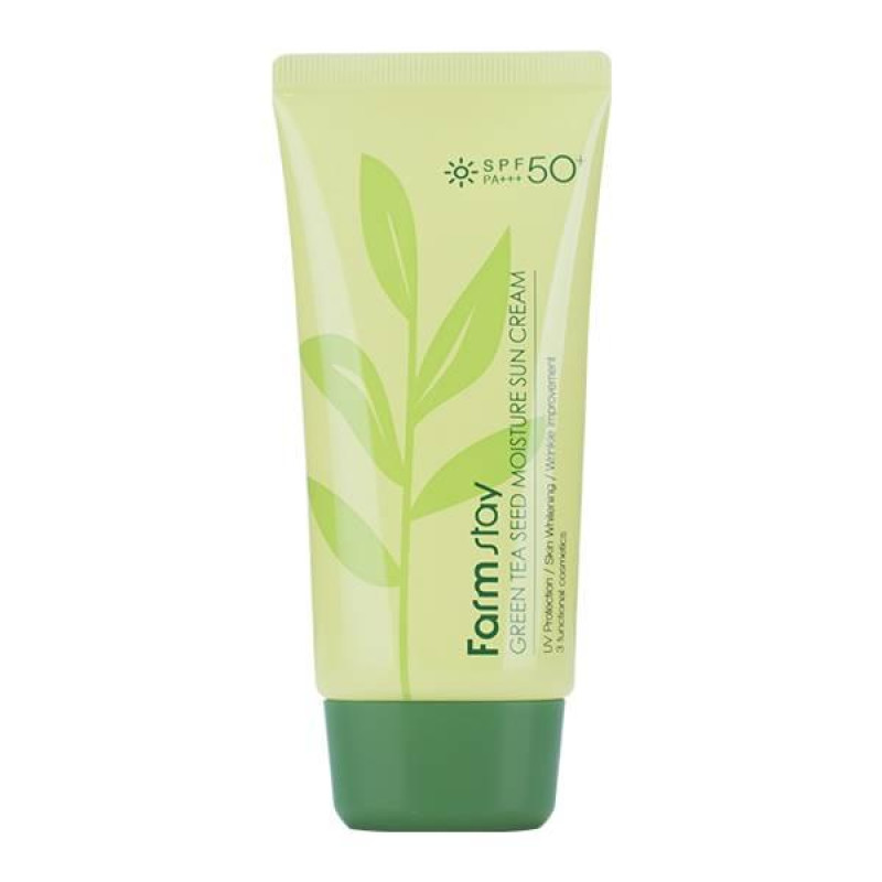 Крем FARMSTAY GREEN TEA SEED MOISTURE SUN CREAM - обеспечивает качественную защиту от ультрафиолета, предупреждает образование покраснений и пигментных пятен, питает витаминным комплексом.