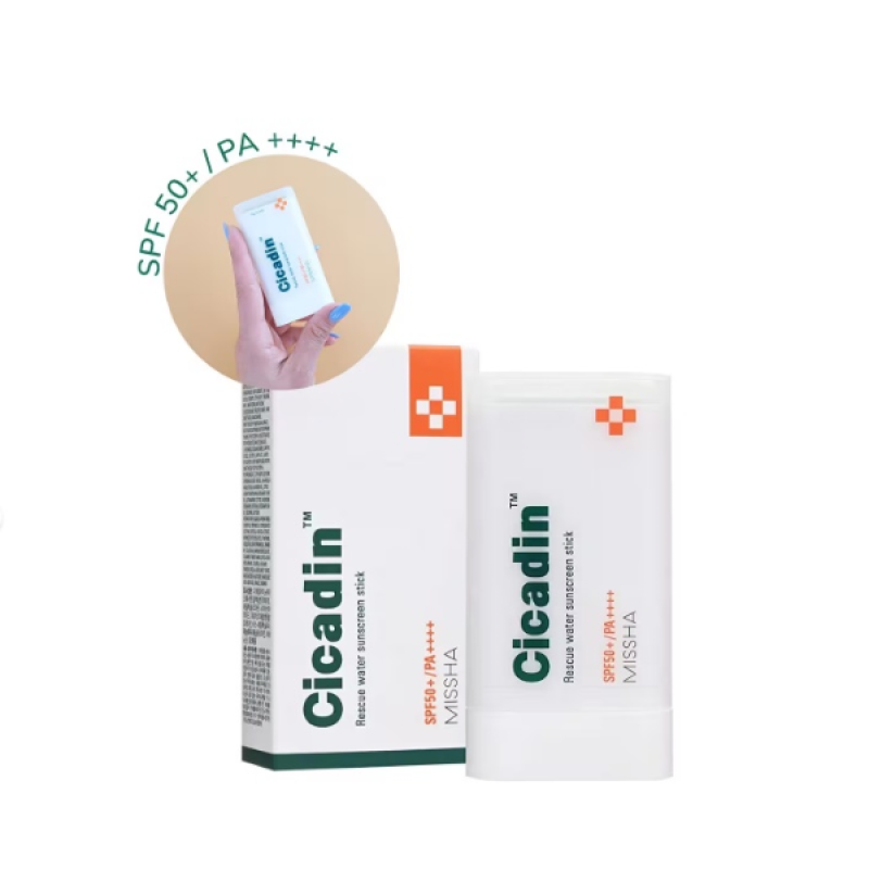 Стик Cicadin Rescue Water Sunscreen Stick SPF50+ PA++++- защищает от ежедневного воздействия ультрафиолета и предотвращает преждевременное старение. В составе средства есть 6 видов центеллы азиатской, которая обладает мощным успокаивающим и восстанавливающим действием. Центелла помогает уменьшить дискомфорт, успокоить кожу после солнечного воздействия и восстановить естественный баланс кожи.Каламин - уменьшает раздражение и жирность кожи. Мадекасосид - защищает от агрессивного воздействия окружающей среды. Этот стик обеспечивает тройной барьер против ультрафиолетового излучения SPF 50+ и PA++++, создает максимальную защиту. Зеленый каламин - создает защитный слой, успокаивает и поддерживает кожу. Экстракт кремниевой травы - природный ингредиент, который эффективно отражает УФ-лучи. Стик удобен для путешествий и может использоваться ежедневно. Средство от Missha имеет экстракты растений, которые эффективно защищают стволовые клетки от старения и восстанавливают повреждения кожи.
