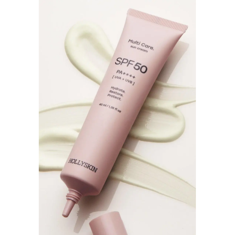 Солнцезащитный крем Multi Care - идеален для ежедневного пользования в условиях повышенной солнечной нагрузки. Обеспечивает надежную широкоспектральную защиту от UVA и UVB лучей, восстанавливает, увлажняет и улучшает общее состояние кожи. Премиум формула, которая состоит из 4 фотостабильных фильтров: Tinosorb® M, Uvinul® A Plus, Uvinul® MC 80, Uvinul® T 150. Средство восстанавливает и успокаивает кожу, благодаря в составе экстрактов центеллы азиатской, шлемника, зеленого чая, розмарина, барбариса, корня солодки. Крем замедляет процессы старения, предотвращает появление пигментации, увлажняет, улучшает тон и текстуру лица. Подходит для всех типов кожи, даже чувствительной. Средство от HOLLYSKIN благодаря своей высокой фотостабильности фильтров, крем обеспечивает эффективную защиту до 8 часов без необходимости обновления.