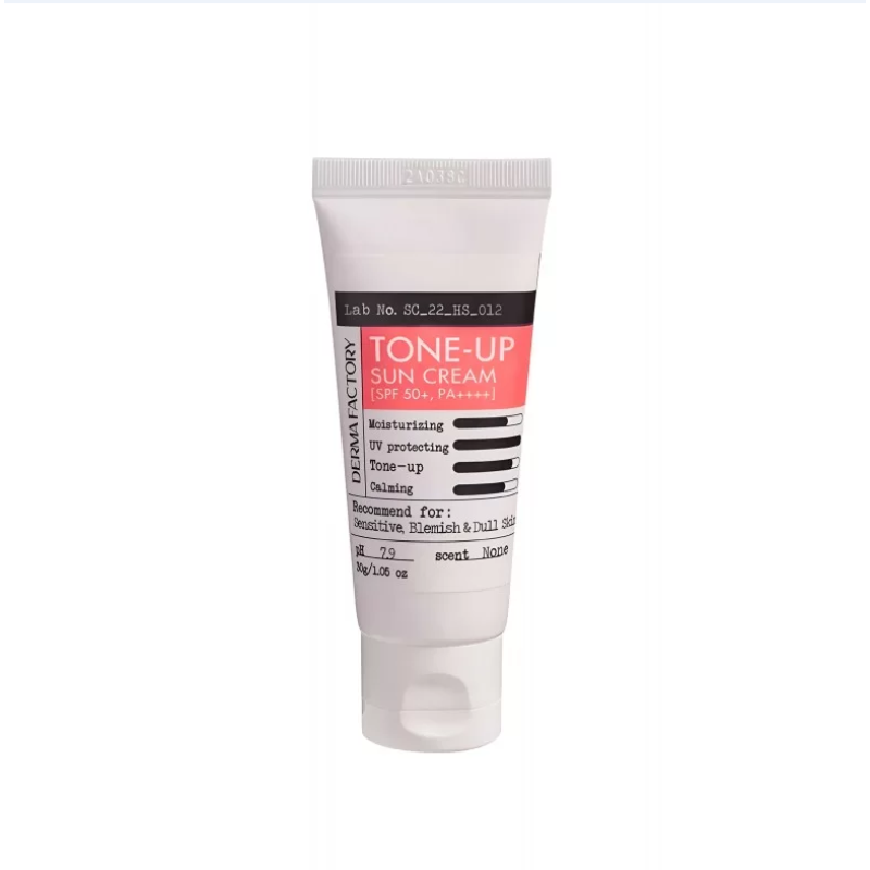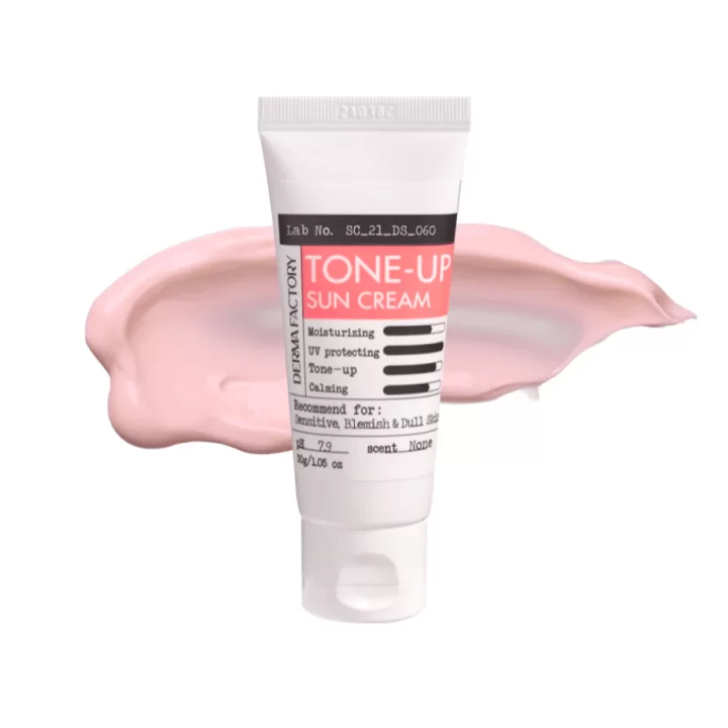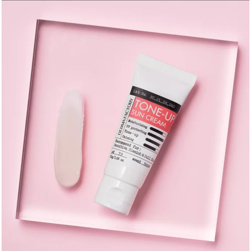 Крем TONE-UP SUN CREAM - обладает высокой защитой от UVA/UVB (SPF 50+ PA++++), а также имеет тонизирующий эффект. В составе есть экстракт даманской розы, который тонизирует, осветляет и увлажняет. Экстракт бамбука - глубоко увлажняет, уменьшает отеки и борется с первыми признаками старения. Экстракт алоэ- успокаивает, восстанавливает тургор, повышает упругость и гладкость кожи. Ниацинамид - обладает успокаивающими и противовоспалительными свойствами, восстанавливает кожу и регулирует выработку себума. Крем состоит исключительно из физических фильтров, которые умеренно увлажняют и матируют кожу, выравнивают оттенок и маскируют недостатки. Средство от DERMAFACTORY очень пригодится в солнечную и жаркую погоду для защиты кожи от ультрафиолета.