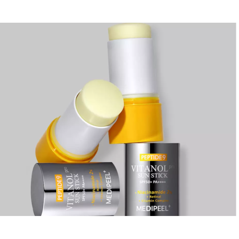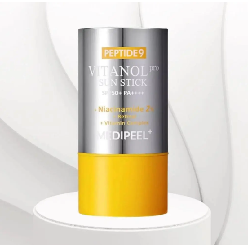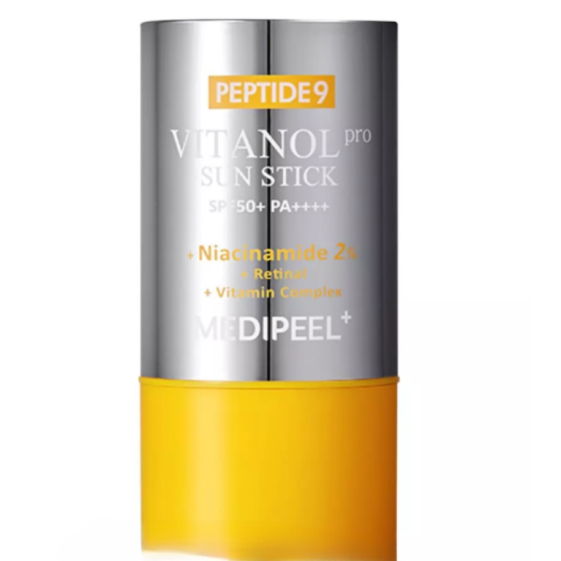 Стик Peptide 9 Vitanol Sun Stick Pro SPF 50+ - ежедневный уход за лицом от солнца, который будет поддерживать молодость и здоровый вид. Солнцезащитный стик сочетает максимальный уровень защиты SPF 50+, а уходовые компоненты в составе поддерживают увлажнение, укрепляют и омолаживают кожу. В составе есть пептидный комплекс - стимулирует регенерацию клеток, улучшает упругость и плотность кожи. Экстракт семян макадамии - смягчает, успокаивает и глубоко увлажняет кожу. Лаванда - снимает раздражение, обладает антиоксидантным и противовоспалительным действием. Гидролизованный коллаген- поддерживает эластичность и предотвращает обезвоживание Экстракт морских водорослей - тонизирует, обогащает кожу минералами и микроэлементами. Ниацинамид - выравнивает тон кожи, уменьшает пигментацию и сужает поры. Солнцезащитный стик эффективно предотвращает фотостарение и появление пигментных пятен. Средство от MEDI-PEEL это максимальная защита кожи и антивозрастной уход в одном флаконе.