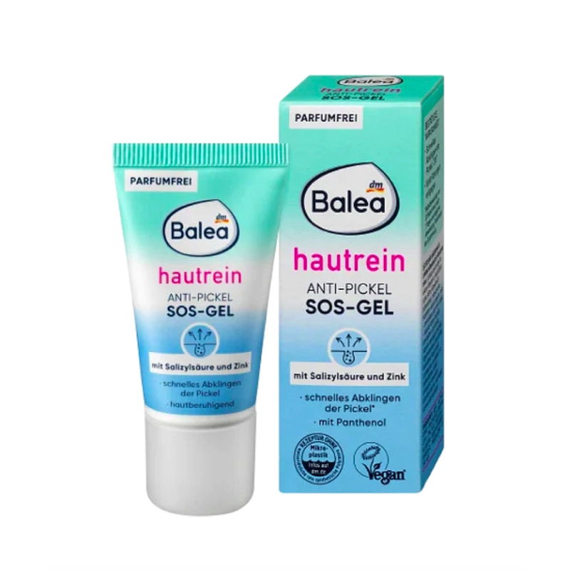 SOS-гель для кожи эффективно борется с бактериями, вызывающими прыщи. Средство уменьшает покраснения и успокаивает кожу. В составе есть салициновая кислота и цинк, которые способствуют очищению пор и уменьшению воспалений. Пантенол и аллантоин - успокаивает кожу и поддерживают ее регенерацию. Гель быстро действует и помогает избавиться от прыщей и черных точек. Формула подходит для чувствительной кожи и быстро устраняет высыпания. Средство от Balea помощник для устранения прыщей за короткое время.