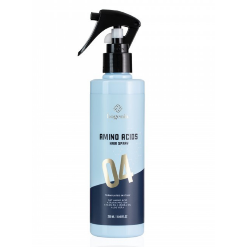Спрей Amino Acids Hair Spray надежная защита для волос от высоких температур и вредного воздействия солнечных лучей. Формула средства не только создает термобарьер, но и восстанавливает поврежденную структуру волос, интенсивно увлажняет и дарит волосам гладкость и шелковистость. Средство минимизирует повреждения от пользования феном, плойки или утюжка. Предотвращает негативное воздействие солнечных лучей, чтобы волосы оставались здоровыми и блестящими. В составе есть кератин и аргановое масло, которые глубоко питают волосы и делают их эластичными и ухоженными. Спрей обладает свойствами антистатического эффекта, который предотвращает наэлектризованность, облегчает расчесывание и укладку волос. Средство от Bogenia придает шелковистости и гладкости волосам, они становятся мягкими, послушными и наполненными жизненной силой.