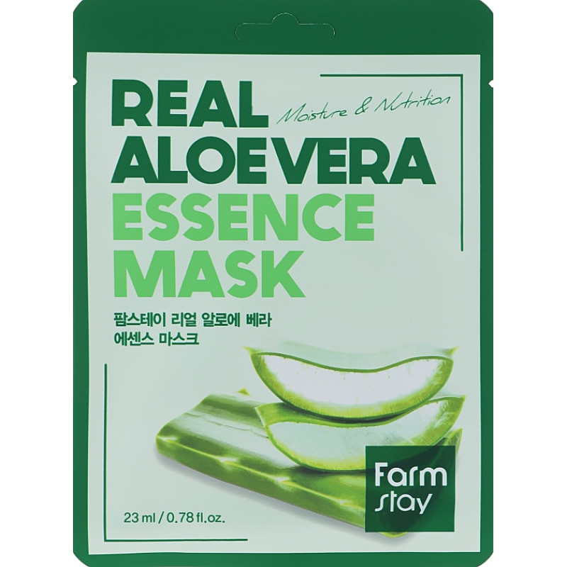 Листовая маска Real Aloe Vera Essence Mask интенсивно увлажняет, насыщает витаминами и микроэлементами, устраняет покраснения, снимает воспаления и зуд.