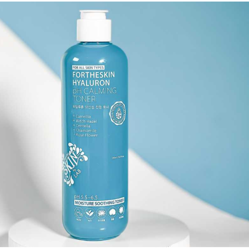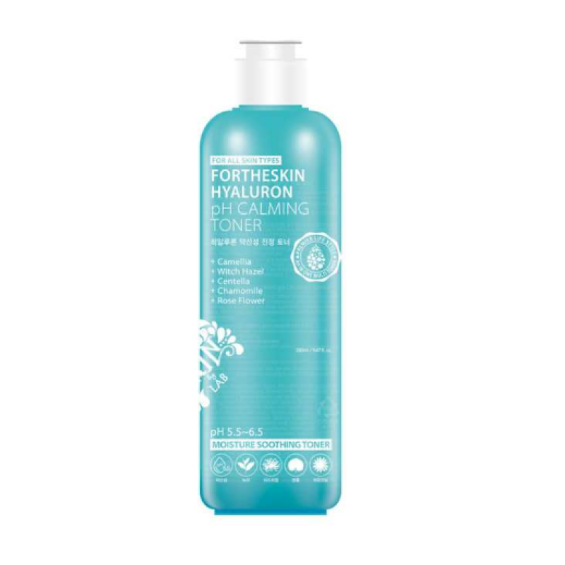 Тонер Hyaluron Ph Calming Toner - нежное средство с гиалуроновой кислотой, которое восстанавливает гидробаланс, уменьшает сухость, шелушение и дискомфорт кожи. Уровень pH 5,5-6,5 средства помогает поддержать естественный защитный барьер кожи, делая ее гладкой и сияющей. В составе есть экстракт центеллы азиатской, который проявляет противовоспалительное, заживляющее и антиоксидантное действие. Экстракт розы и ромашки смягчает, увлажняет и успокаивает кожу. Экстракт гамамелиса - регулирует выработку себума и очищает поры. Тонер от Fortheskin дарит свежесть, увлажнение и комфорт, а защищает от свободных радикалов.