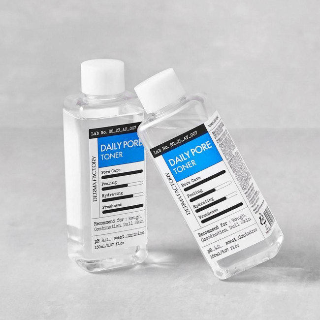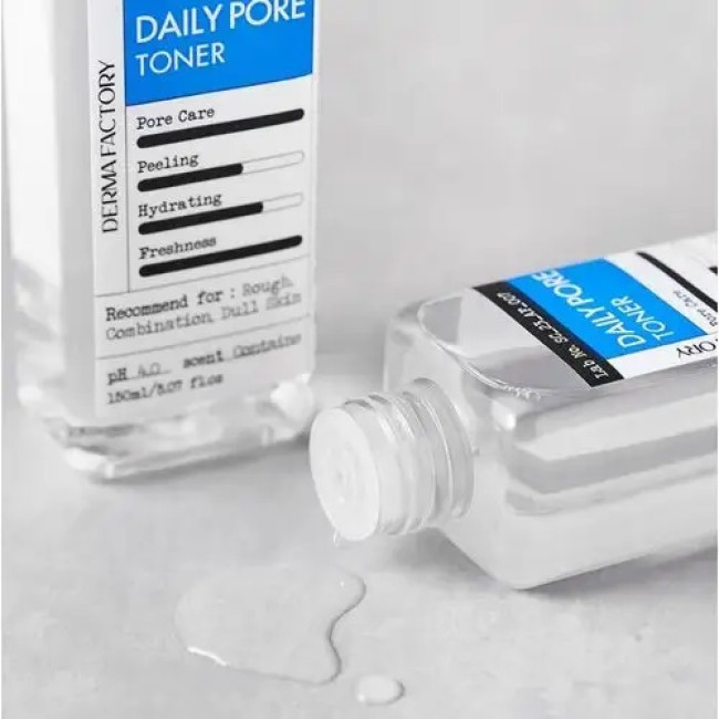 Derma Factory Daily Pore Toner – это ежедневный тоник, который обеспечивает мягкое отшелушивание мертвых клеток кожи и очищение пор, благодаря чему текстура кожи становится гладкой и чистой. Благодаря комбинации гликолевой кислоты (3%), салициловой кислоты (0,1%), глюконолактона (1%) и LHA продукт эффективно очищает и обновляет кожу.