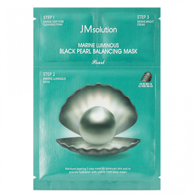 Маска Marine Luminous Black Pearl Balancing Mask - трехфазное средство для глубокого очищения, восстановления, питания и укрепления кожи. Она состоит из пены для умывания, тканевой маски и крема.