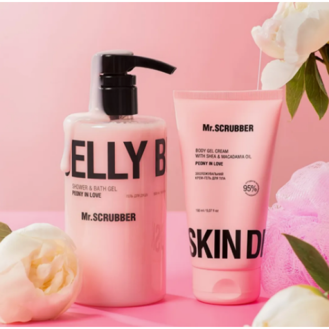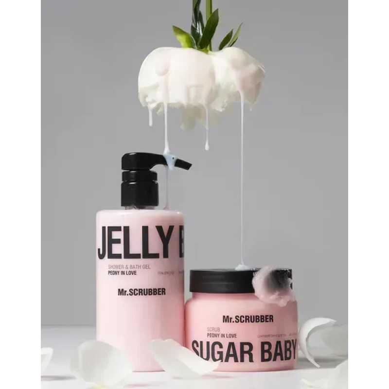 Гель для душу JELLY BUBBLES Peony in Love - перетворює щоденний догляд у насолоду, бо засіб має аромат розквітлої півонії. Цей аромат огортає тіло та дарує атмосферу ніжності, свіжості та закоханості. Гель делікатно доглядає за шкірою, не пересушує її та насичує поживними оліями - кокосовою, авокадо, ши, арганової та персикових кісточок. Компоненти глибоко зволожують, заспокоюють, відновлюють і захищають шкіру від сухості. Морська сіль- дезінфікує шкіру і загоює дрібні пошкодження. Лимонна кислота - відлущує шкіру, видаляє мертві клітини та прискорює регенерацію. В результаті делікатно очищується шкіра, інтенсивно зволожується, пом'якшується та заспокоюється. Аромат Peony in Love складається з розквітлої півонії з її витонченим і квітковим ароматом, а також фруктових ноток. Засіб від Mr.Sсrubber підходить для щоденного використання, створює пишну ароматну піну, не викликає подразнень та алергічних реакцій.