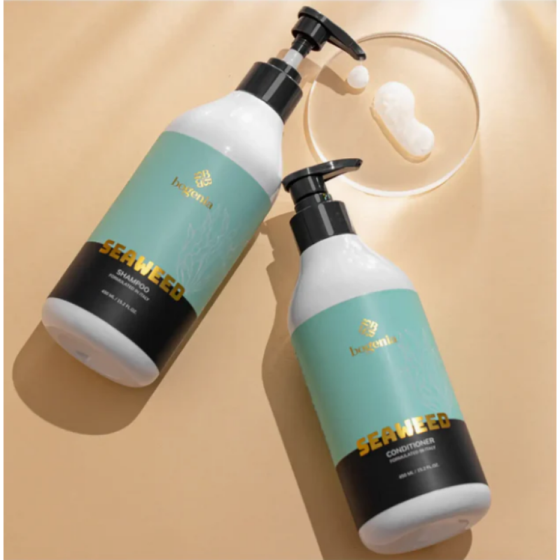 Кондиціонер Seaweed Conditioner- інтенсивний догляд і відновлення волосся завдяки зволожувальній формулі з натуральними компонентами. В складі є екстракт морських водоростей, який живить волосся мінералами і вітамінами, зміцнюючи волосся від коренів до кінчиків. Олія розмарину - покращує мікроциркуляція шкіри голови, сприяючи росту здорового волосся. Арганова олія - глибоко зволожує корені, надає м'якість і природний блиск. Кондиціонер інтенсивно зміцнює та відновлює волосся, полегшує розчісування заплутаного волосся, робить локони м'якими і доглянутими. Засіб від Bogenia робить волосся м'яким, зволоженим з природним блиском.