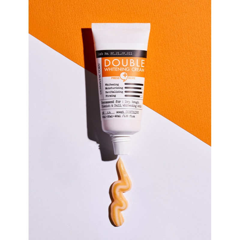 Крем Derma Factory Double Whitening Cream — це високоефективний засіб для боротьби з пігментацією та тьмяністю шкіри від інноваційного корейського бренду Derma Factory. Даний крем для обличчя має подвійну дію завдяки поєднанню потужних освітлювальних компонентів, що працюють на різних рівнях епідермісу. Він ідеально підходить для шкіри з пігментними плямами, слідами пост-акне та нерівним тоном. Основна дія продукту спрямована на блокування синтезу меланіну, інтенсивне сяйво та вирівнювання кольору обличчя. Крем не лише освітлює наявні недосконалості, а й запобігає появі нових плям, одночасно зволожуючи шкіру та покращуючи її текстуру, роблячи обличчя свіжим і доглянутим.