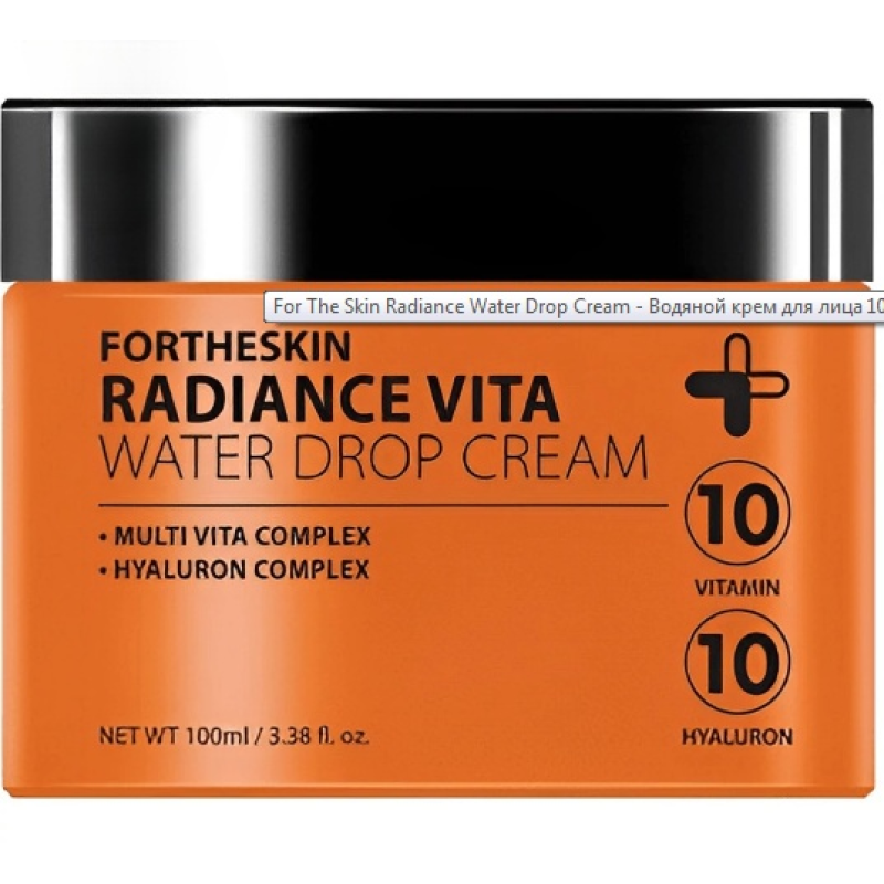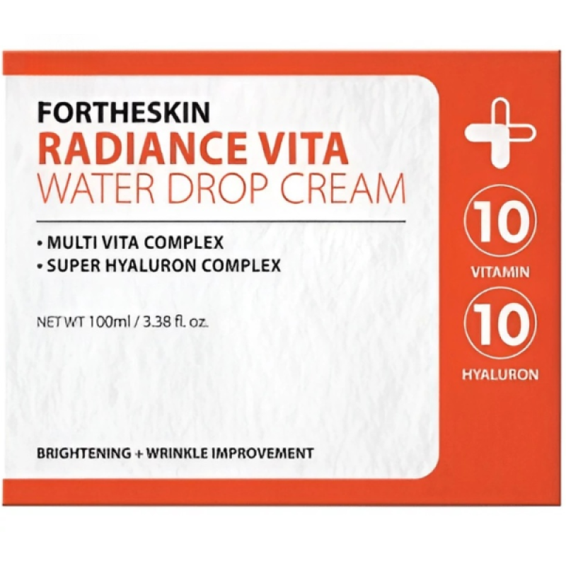 Крем для обличчя Radiance Vita Water Drop Cream - допомагає вирівняти тон шкіри, наповнює шкіру блиском, бореться з тьмяністю шкіри і покращує колір обличчя. В складі є вітамін С, який проявляє свою антиоксидантну дію, захищає шкіру від ультрафіолетових променів, підвищує еластичність і пружність. Пробіотики - допомагають підтримувати здоровий мікробіом шкіри, зменшує прояви акне, подразнення і алергічні реакції. Гіалуронова кислота- підтримує оптимальний рівень зволоження, зберігає пружність і еластичність шкіри. Крем зміцнює захисний бар'єр шкіри, сповільнює процеси старіння і захищає від фотостаріння. Засіб від Fortheskin здатен боротися з багатьма проблемами, робити шкіру зволоженою, сяючою, пружною і захищати від зовнішнього середовища.