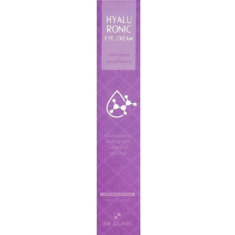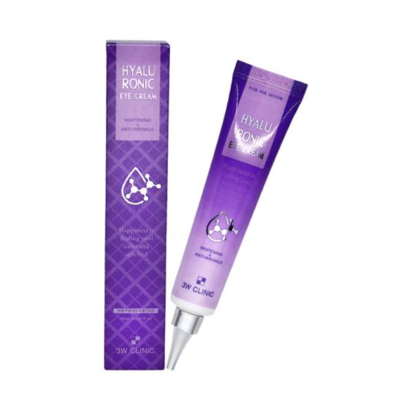 Крем Hyaluronic Eye Cream - зволожує та підтримує природний рівень pH, запобігає сухості та лущенню, захищає від негативного впливу середовища. Також крем для повік проявляє антивікові властивості: розгладжує дрібні зморшки, запобігає появі нових, покращує тонус та еластичність шкіри. В складі є ніацинамід - проявляє свою дію против появи темних кіл та пігментації. Гіалуронова кислота- підтримує та регулює рівень води в клітинах, та запобігає зневодненню клітин. Аденозин - забезпечує ліфтинг-ефект, стимулює синтез колагену, зменшує виразність зморшок та уповільнює процеси старіння шкіри. Аллантоїн- пом'якшує та інтенсивно зволожує шкіру навколо очей, сприяє звуженню пор та нормалізує роботу сальних залоз. Також засіб від 3W Clinic запобігає закупорці пор, утворенню комедонів і запальних процесів. Крем підтримує шкіру у зволоженому вигляді, заспокоює подразнену шкіру і уповільнює процеси старіння.