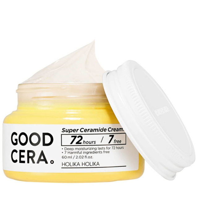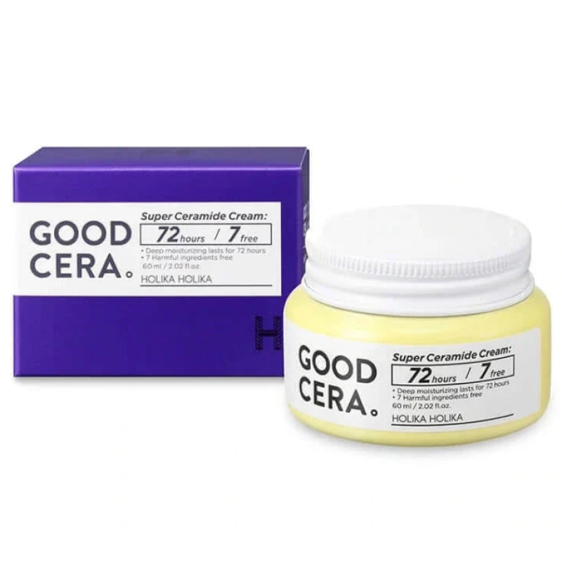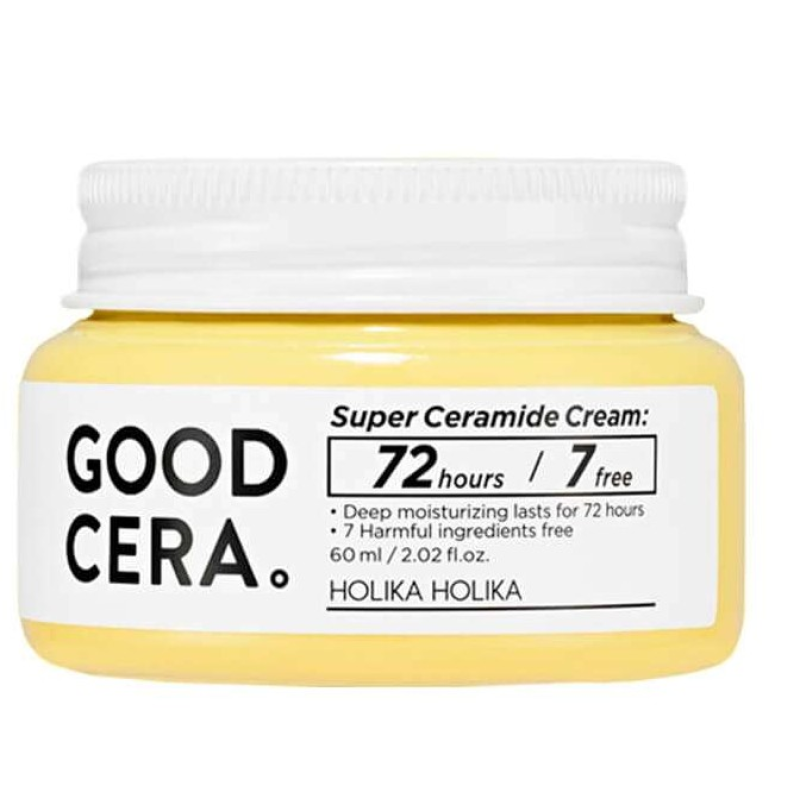 Крем Good Cera Super Cream (Sensitive) - відновлює гідробаланс шкіри і робить шкіру здоровою на вигляд. Формула засобу дозволяє підтримувати вологу протягом 72 годин. Крем робить шкіру шовковистою, м'якою і захищає від негативного впливу зовнішніх чинників. В складі є кераміди - підвищують еластичність шкіри і запобігають втраті вологи. Екстракт дріжджів - глибоко зволожує, захищає клітини від ультра променів і стимулює вироблення свого колагену. Олія ши- живить, регенерує, сповільнює старіння і розгладжує зморшки. Засіб миттєво заспокоює подразнення, зменшує почервоніння, покращує пружність і еластичність. Засіб від Holika Holika має ніжну текстуру, швидко вбирається після застосування обличчя оживляється.