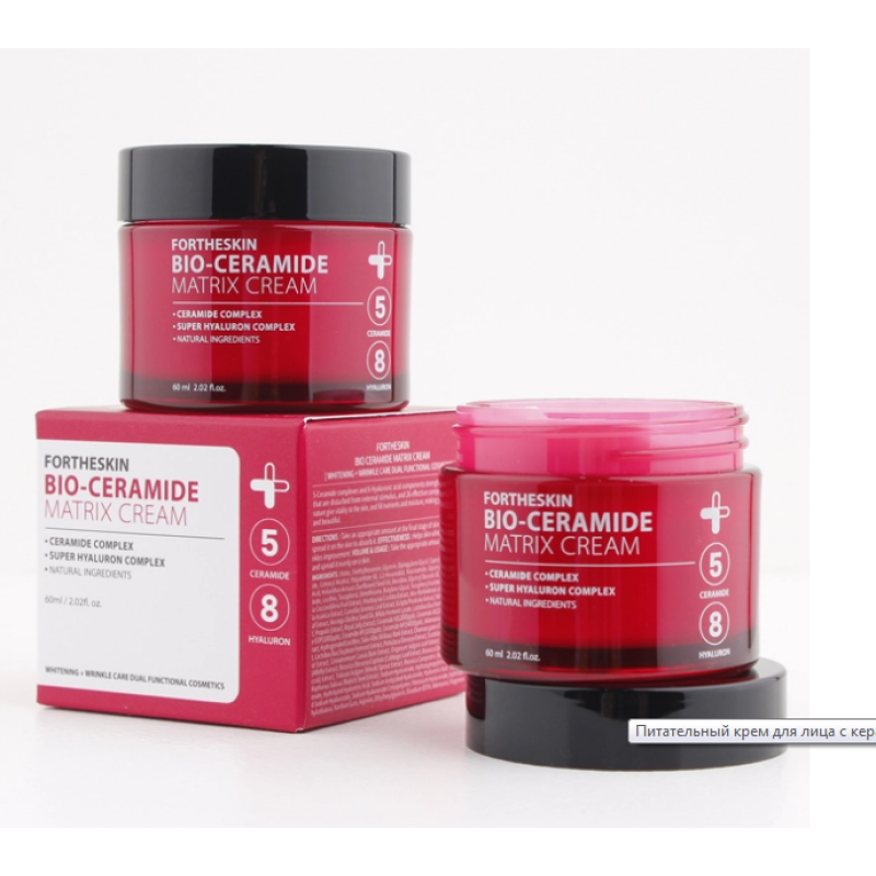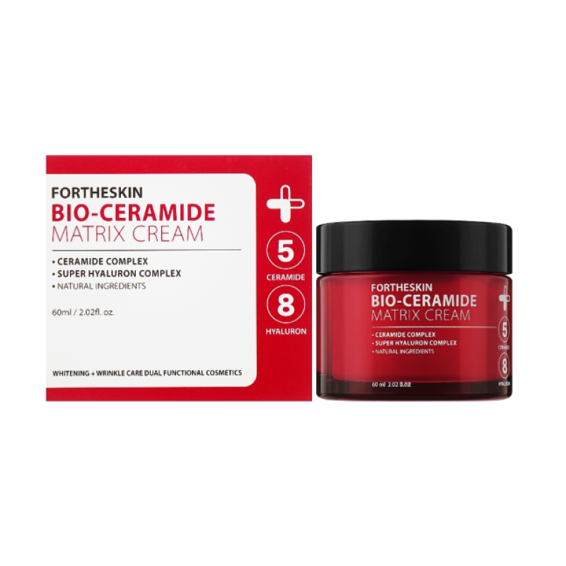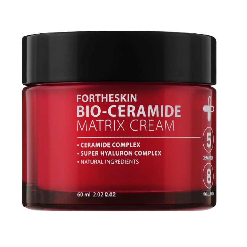 Крем Bio Ceramide Matrix Cream - інтенсивний догляд, спрямований на відновлення, зволоження і захист шкіри. В складі є кераміди і гіалуронова кислота, які усувають ознаки зневоднення, втоми і передчасного старіння. Засіб стимулює регенерацію клітин, покращує текстуру шкіри, підвищує її пружність і зміцнює захисний бар'єр, захищає від негативного впливу зовнішніх факторів. Гіалуронова кислота забезпечує багаторівневе зволоження. Засіб підвищує пружність і еластичність завдяки стимулюванню синтезу колагену і еластину. Крем зменшує зморшки та тонкі лінії, коригує вікові зміни. Крем бореться з сухістю, тьмяністю і лущенням, має заспокійливу і протизапальну дію. Засіб від Fortheskin комплексне рішення для глибокого зволоження та зміцнення шкіри, допомагає зберегти її молодість і здоров'я.