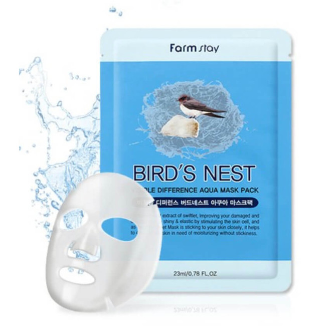 Тканинна маска Visible Difference Birds Nest Aqua Mask Pack ефективно відновлює природну красу шкіри, усуває жирний блиск, нормалізує гідроліпідний баланс, освітлює епідерміс, надає йому свіжого, відпочилого, сяючого вигляду.