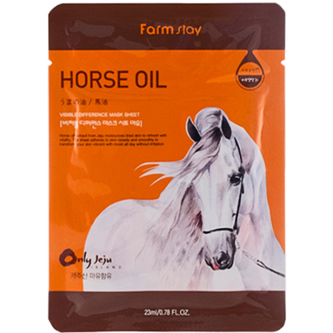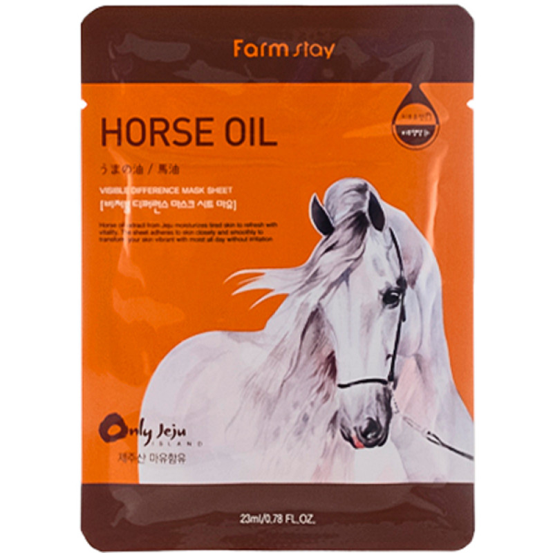 Тканинна маска Visible Difference Horse Oil Mask Pack призначена для відновлення шкірних покривів, схильних до сухості, в'ялості, зневоднення. Препарат активно зволожує, живить, пом'якшує та освітлює дерму.