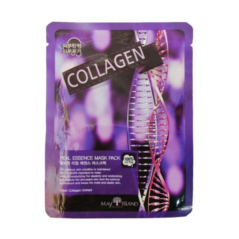 Гіалуронова кислота сприяє гідратації шкірних покривів, вирівнюванню їхнього мікрорельєфу, підвищує місцевий імунітет. Колаген підвищують пружність епідермісу, сприяють розгладжуванню мімічних зморшок, складочок та заломів. Беатин знімає роздратування, заспокоює свербіж, запобігає появі вугрової висипки та лущення. Екстракт ромашки покращує кровообіг, стимулює обмінні процеси, прискорює метаболізм, мінімізує продукування меланіну, освітлює шкірку. Фітоекстракт гамамелісу тонізує, надає бактерицидну дію, попереджає виникнення висипів, почервоніння, куперозної сітки. Систематичне застосування тканинної маски з ударною порцією колагенів допоможе продовжити молодість обличчя. Замовити і купити косметику популярного виробника May Island можна всього в один клік на сайті інтернет-магазину .