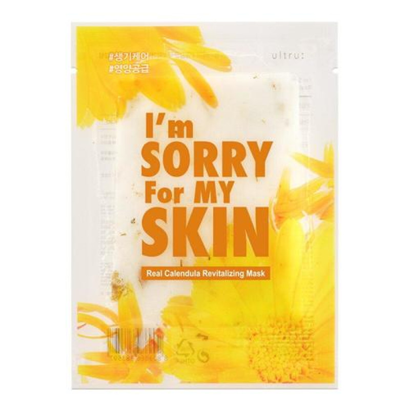 Маска тканинна для обличчя Ultru I'm Sorry For My Skin Real Calendula Revitalizing Mask - спеціально розроблена для догляду за тьмяною та пошкодженою шкірою. Вона чудово збагачує вологою, усуває роздратування, позбавляє запалень, дарує шкірі рівний тон і прекрасний здоровий блиск.