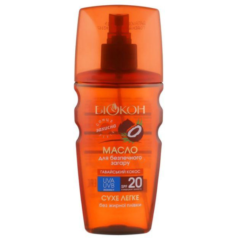 Інноваційна олія для засмаги у формі спрею "Гавайський кокос" SPF20 чинить м'яку сонцезахисну, імуномоделюючу, стимулюючу дію. Препарат легко наноситься на шкірні покриви, не залишає неприємних жирних слідів.
