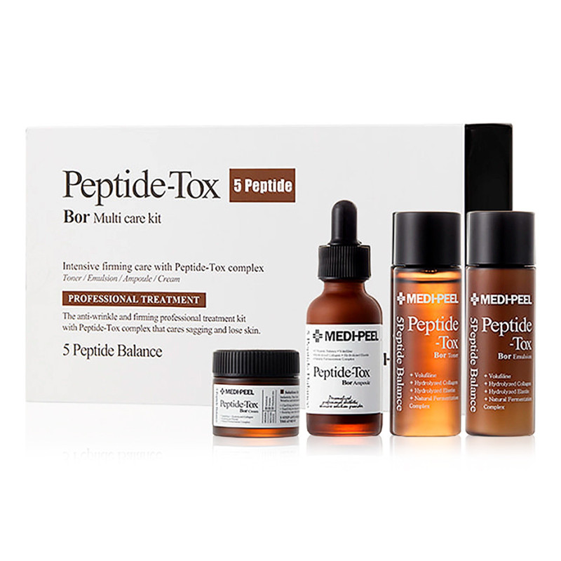 Bor-Tox Peptide Emulsion : Purified Water, Dipropylene Glycol, Caprylic/Capric Triglyceride, Butylene Glycol, Cetearyl Alcohol, Polyglyceryl-3 Distearate, 1,2-Hexanediol, Hydrogenated Polydecene, Sorbitan Steara Glyceryl Stearate Citrate, Arginine, Carbomer, Allantoin, Betaine, Trehalose, Hydrogenated Polyisobutene, Hydrolyzed Collagen, Hydrolyzed Elastin, Leontopodium Alpinum Callus Culture Extract, Saccharomyces Ferment Filtrute, Bifida Ferment Filtrate, Bifida Ferment Filtrate, Bifida Ferment Filtrate, /Punica Granatum Fruit Ferment Extract, Lactobacillus/Wasabia Japonica Root Ferment Extract, Saccharomyces/Grape Ferment Extract, Sodium Hyaluronate, Hydroxypropyltrimonium Hyaluronate, Hydrolyzed Hyaluron Acid, Sodium Acetylated Hyaluronate, Sodium Acetylated Hyaluronate, Flower Extract, Origanum Vulgare E Xtract, Rosmarinus Officinalis (Rosemary) Leaf Extract, Thymus Vulgaris (Thyme) Flower/Leaf/Stem Extract, Jania Rubens Extract, Dipotassium Glycyrrhizate, Adenosine, Anemarrhena Asphodeloides Root Extract, Acetyl Hexapept Oligopeptide-32, Palmitoyl Pentapeptide-4, Inonotus Obliquus (Mushroom) Extract, Glycerin, Gardenia Florida Fruit Extract, Disodium EDTA, Ethylhexylglycerin, Fragrance