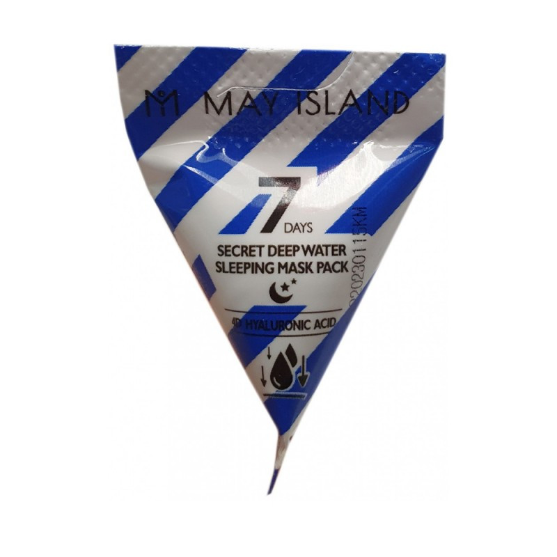 Нічна незмивна маска May Island 7 Days Secret Deep Water Sleeping Mask Pack включає 12 масок одноразового використання. Маска має легку, кремоподібну текстуру, яка рівномірно наноситься, добре вбирається і не залишає відчуття стягнутості. Відновить та оздоровить суху, зневоднену, тьмяну шкіру обличчя.