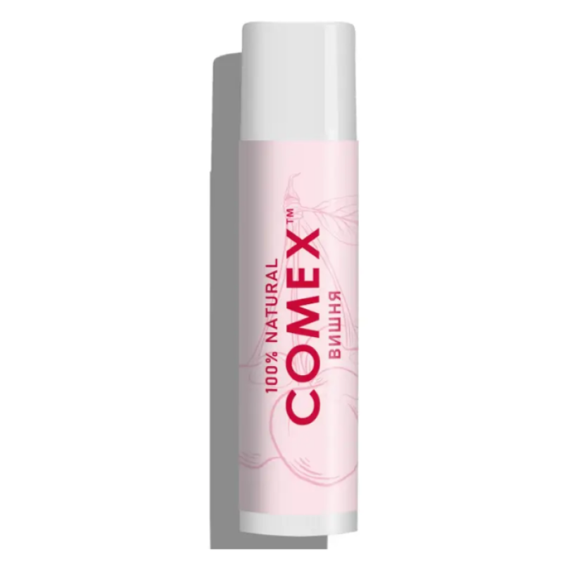 Натуральний бальзам - це ніжний догляд і надійний захист для чутливої шкіри губ. Засіб інтенсивно живить, глибоко зволожує та сприяє загоєнню мікротріщин. Засіб повертає губам м'якість, гладкість та комфорт. Формула бальзаму створена на основі рослинних олій та екстракт, які підтримують оптимальний рівень зволоженості та забезпечує щоденний захист від впливу зовнішніх чинників. Олія жожоба та миндалю інтенсивно відновлює губи і дарує приємне відчуття зволоженості. Засіб має приємний аромат п'янкої вишні, який супроводжує протягом дня. Бальзам від TM Comex насичує шкірі вітамінами і підтримує природний водний баланс.