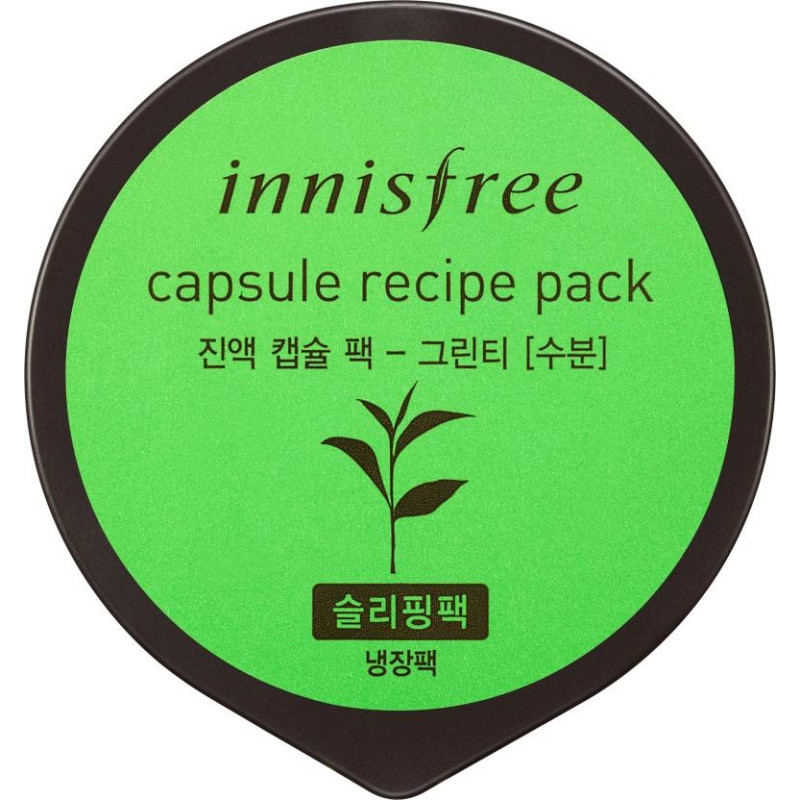 Маска Capsule Recipe pack Green tea Innisfree відмінно зволожує та очищає шкіру, вже після першого нічного застосування ваше обличчя виглядатиме свіжим, відпочилим та здоровим. В основі продукту натуральний екстракт зеленого чаю, витягнутий зі свіжого листя, який багатий на амінокислоти та мінерали, активно живить клітини протягом 12 годин, діє як найсильніший антиоксидант, позбавляє згубного впливу вільних радикалів, уповільнює процес старіння. Жирні кислоти - активізують вироблення колагену, відновлюють колагенові волокна, перешкоджають їх руйнуванню, роблять дерму більш пружною і еластичною, позбавляють від перших ознак старіння, розгладжують мімічні зморшки, вбудовуються в ліпідний шар і зміцнюють його, зміцнюють його, зміцнюють його. Екстракт кореня в'яза - захищає від шкідливого впливу ультрафіолетового випромінювання, вітру та холоду, зміцнює тургор шкіри, позбавляє таких недоліків як: вугрі, прищі, акне та інші запалення, насичує вітамінним комплексом. Бетаїн – нормалізує електролітний баланс, сприяє глибокому зволоженню, загоює ранки та мікротріщини, позбавляє від слідів пост акне. Екстракт амаранту – підтягує овал обличчя, повертає шкірі пружність, позбавляє небажаної пігментації, вирівнює тон та рельєф дерми. Екстракт центелли – заспокоює, ніжно знімає запалення та подразнення, розчиняє захисну оболонку шкідливих бактерій, не дозволяє їм розмножуватися, зміцнює стінки капілярів, покращує мікроциркуляцію. Екстракт рису – проникає глибоко в пори, абсорбує залишки забруднень, ефективно очищає, робить шкіру матовою та бархатистою. Лецитин – впливає відновлення бар'єрних функцій епідермісу, процеси харчування клітин, позбавлення їх шлаків. Екстракт апельсина – чинить біостимулюючу дію, прискорює обмінні процеси в клітинах, розгладжує шкірний покрив, знімає м'язову напругу. Вітамін Е - сприяє утриманню вологи надає гладкості, тонізує, перешкоджає появі в'ялості дерми. Цираміди є важливим компонентом клітинних мембран, які затримують молекули води.