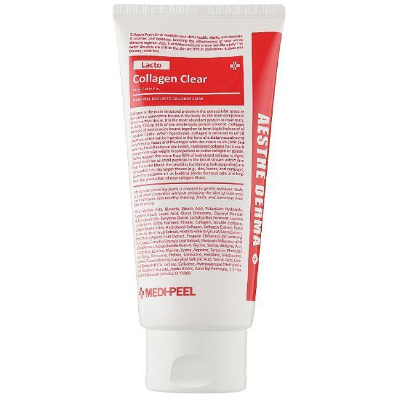 Ніжна пінка для обличчя Red Lacto Collagen Clear дбайливо усуває різні забруднення, очищає пори, змиває надлишки себуму. Вона має пом'якшувальну, зволожуючу, відновлюючу дію, захищає шкіру від негативного впливу навколишнього середовища. Препарат активізує регенераційні та антивікові процеси на клітинному рівні.