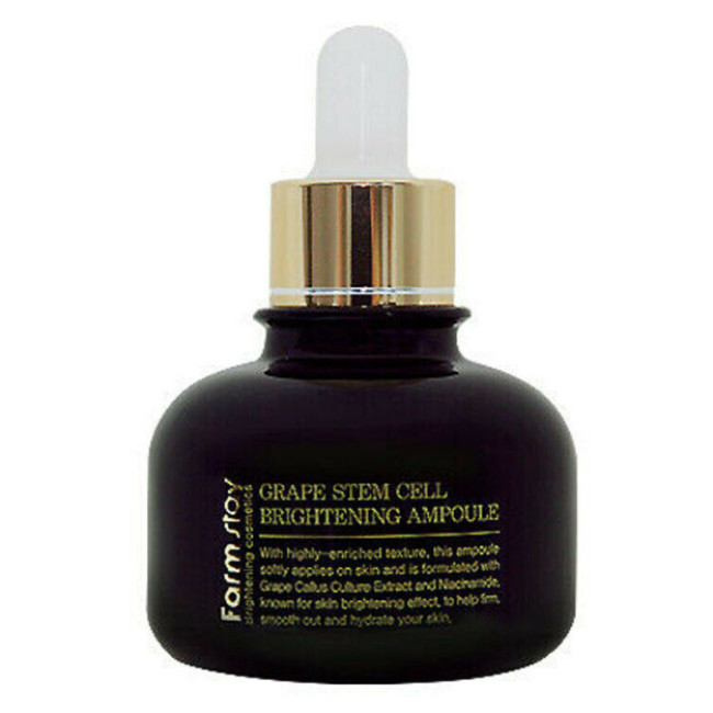 Професійна сироватка Grape Stem Cell Brightening Ampoule розроблена для інтенсивного живлення, зволоження та тонізування епітелію. Вона дієво зміцнює епідерміс, покращує контури обличчя, запобігає ранньому його старінню. Засіб вирівнює тон, освітлює пігментацію, уповільнює окислювальні процеси.