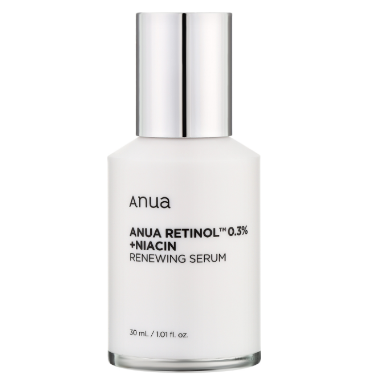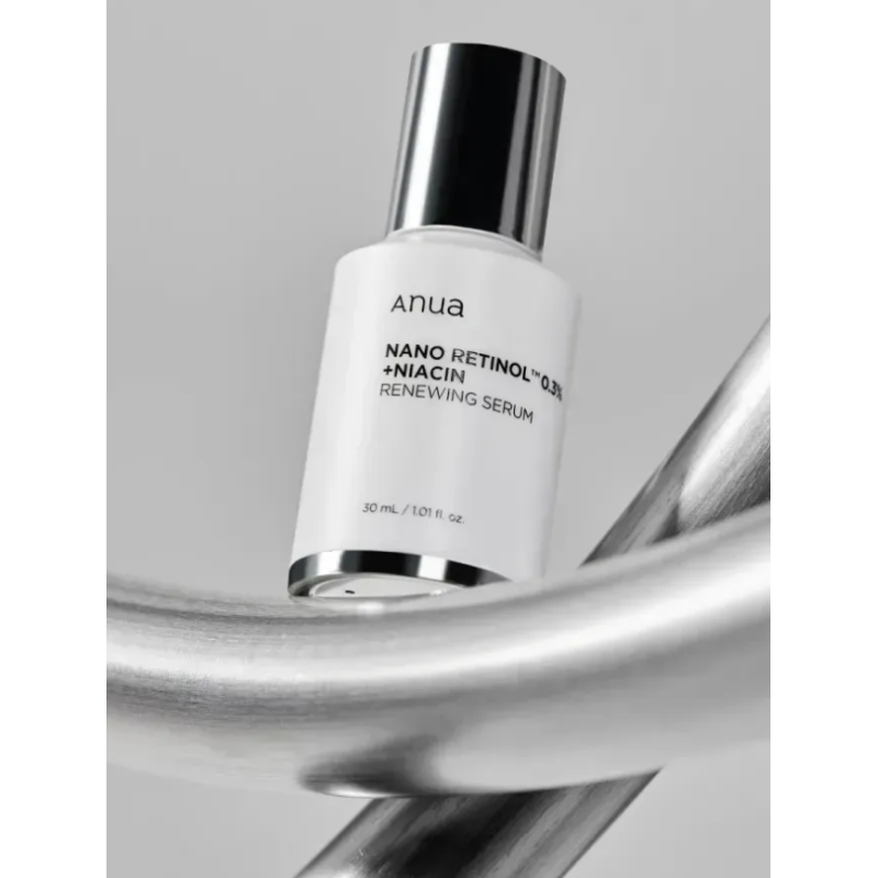 Сироватка Nano Retinol 0.3% + Niacin Renewing Serum - поєднує потужну дію ретинолу з м'якою дією ніацинаміду, які борються з пігментацією, постакне та нерівним тоном шкіри. Засіб глибоко впливає на процеси регенерації та оновлення клітин, вирівнюючи рельєф і колір обличчя, водночас зміцнюючи захисний бар'єр шкіри. Легка текстура сироватки, швидко поглинається шкірою, не залишаючи липкості і жирного блиску. В складі є 5 % ніацинаміду, який освітлює пігментні плями та сліди постакне, вирівнює тон. 0,3% ретинолу - омолоджує, зменшує дрібні зморшки і поновлює клітини. 8 видів пептидів зміцнюють структуру шкіри і підтримують її захисний бар'єр. Екстракт центелли азіатської - заспокоює, зменшує запалення і прискорює загоєння. Сироватка візуально розгладжує шкіру, зменшує запалення і прискорює загоєння. Засіб від Anua - це багатофункціональний доглядовий засіб, який вирішить наявні проблеми шкіри.