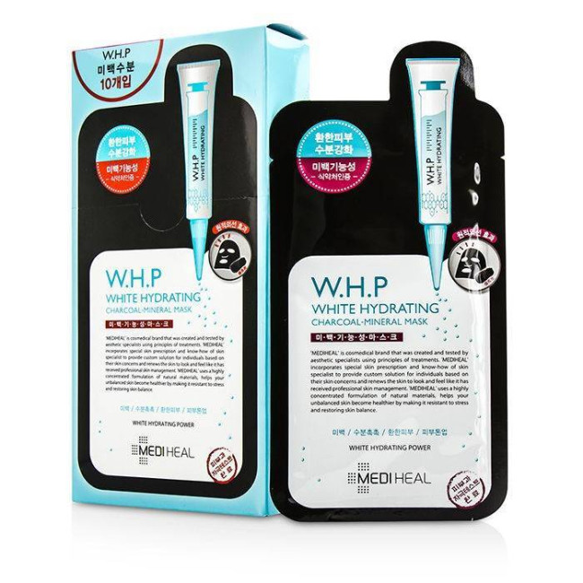 Маска Mediheal WHP White Hydrating Black Mask EX - має незвичайний чорний колір, чудово освітлює та зволожує шкіру, прискорює обмінні процеси у клітинах, очищує пори від шлаків та токсинів.