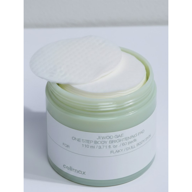 Освітлюючі педи Celimax Jiwoogae One Step Body Brightening Pad — це інноваційний засіб для локального догляду за шкірою тіла, спрямований на боротьбу з пігментацією та нерівним тоном. Продукт від популярного бренду Celimax допомагає ефективно освітлити темні ділянки шкіри, такі як лікті, коліна, пахви та зони тертя одягу. Ці педи для обличчя та тіла делікатно відлущують ороговілі клітини завдяки PHA-кислотам, водночас пригнічуючи синтез меланіну. Засіб ідеально підходить для розв'язання проблеми постакне на тілі та гіперпігментації, повертаючи шкірі гладкість, здорове сяйво та рівномірний відтінок без подразнень.