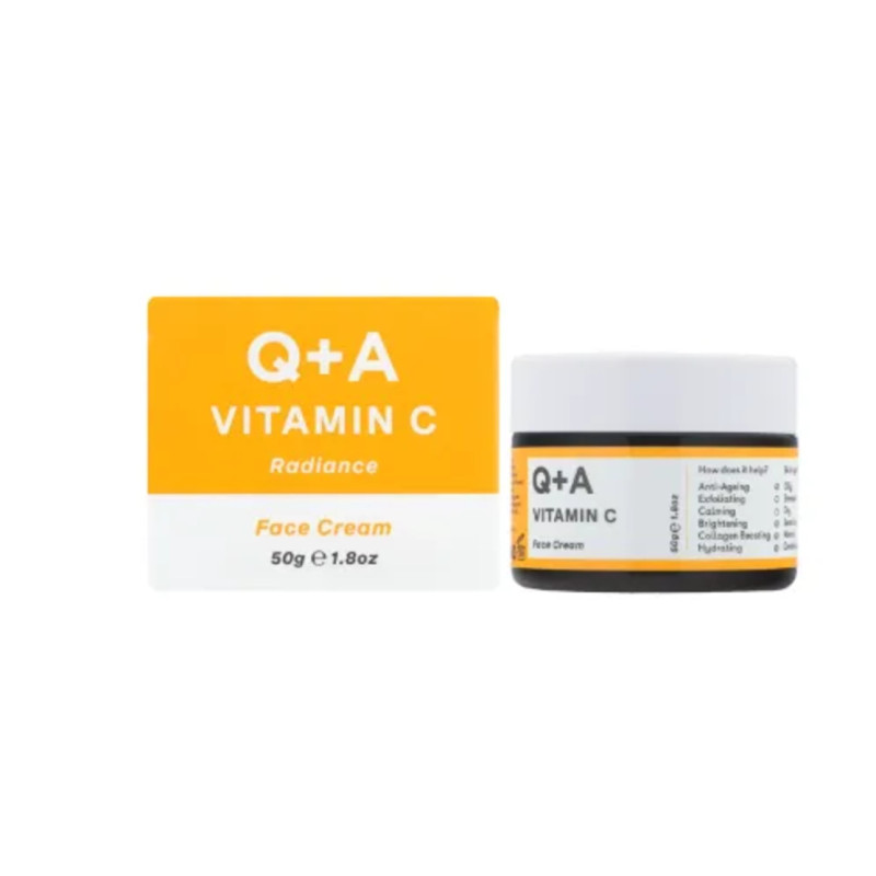 Крем для обличчя Q+A - працює над виробленням колагену, який допомагає шкірі підтримувати пружність, бореться з першими ознаками старіння і зменшує дрібні зморшки. Після використання засобу шкіра забезпечена інтенсивним зволоженням та сяйвом, підходить для різних типів шкіри. В складі є вітамін С - потужний антиоксидант, що освітлює шкіру, вирівнює її тон і сприяє зменшенню зморшок. Центелла азіатська - заспокоює шкіру, зменшує запалення і підтримує її природний бар'єр. Екстракти тропічних фруктів - це природне джерело антиоксидантів. які живлять шкіру і роблять її здоровішою і сяючою. Завдяки легкій структурі крем підходить для щоденного користування, і може стати ідеальною основою під макіяж, яка вирівнює тон шкіри, зволожує і підвищує еластичність. Засіб від Q+A - ідеальне рішення для тих, хто хоче отримати сяючу і зволоженню шкіру.