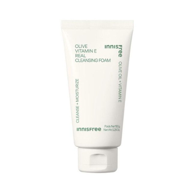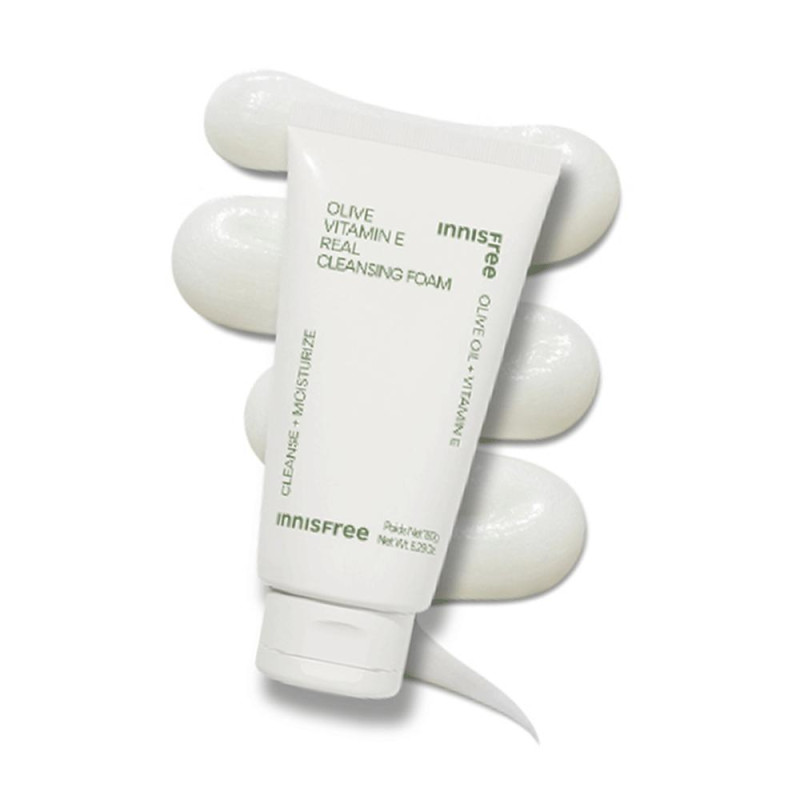 Пінка на основі оливи Vitamin E Real Cleansing Foam - ідеальний засіб для дбайливого догляду за шкірою обличчя. Пінка дбайливо видаляє забруднення, залишки макіяжу, але не пересушує шкіру. Засіб живить шкіру вітамінами, усуває сухість і лущення, після користування шкіра стає гладенькою і шовковистою. Повертає шкірі пружність і еластичність, тим самим захищаючи шкіру від передчасного старіння. В складі є олива - поживний компонент, який збагачує шкіру вітамінами, пом'якшує і не забиває пори. Олива володіє антибактеріальною дією, живить шкіру вітаміном Е, прискорює регенерацію шкіру. Японська камелія і шкірка мандаринів - відновлює захисні функції шкіри, знімає запалення і освітлює пігментні плями. Пінка для вмивання не містить штучні барвники і продукти тваринного походження. Засіб від Innisfree має кремову і еластичну текстуру, яка очищує і зволожує шкіру без роздратування.